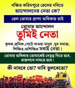 করিমপুর বাসীরা প্রশ্ন তুলেছেন প্রস্তাবিত আড়ংঘাটা থেকে বাংলাদেশ সীমান্ত সংলগ্ন দেশের নিরাপত্তার স্বার্থে দত্তপুলিয়া পর্যন্ত ৮ কিমি নতুন রেলপথ নির্মাণের কথা। করিমপুর সীমান্তবাসীর প্রশ্ন তাহলে নদীয়ার উত্তরপূর্বের আন্তর্জাতিক সীমান্ত এলাকা নিয়ে দেশের নিরাপত্তার বিষয়টি কেন ধর্তব্যের বাইরে রাখা হবে?